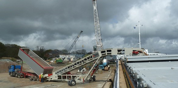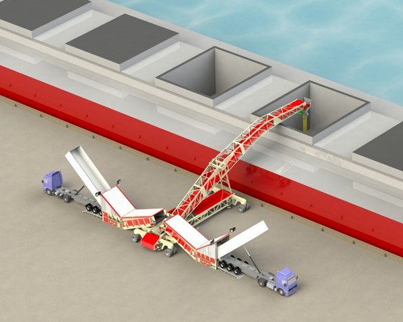 散料裝車(chē)機(jī)采用新技術(shù),極大地提高工作效率,降低勞動(dòng)強(qiáng)度,減少貨物損傷,縮短車(chē)船、碼頭的裝卸時(shí)間,是企業(yè)降低生產(chǎn)成本,提高效率和產(chǎn)品質(zhì)量的有效設(shè)備。可以把港口,煤礦,砂石礦和物流中心,大型散貨存放地的散裝物料直接輸送到傳輸帶上并輸送到大型卡車(chē)上,裝車(chē)效率高,速度快,每小時(shí)可以裝料800噸以上。工作動(dòng)力采用柴油機(jī),行走為液壓馬達(dá)行走。履帶行走使用不同的復(fù)雜路況,移動(dòng)快捷,方便。液壓先導(dǎo)操作簡(jiǎn)單,靈活。
