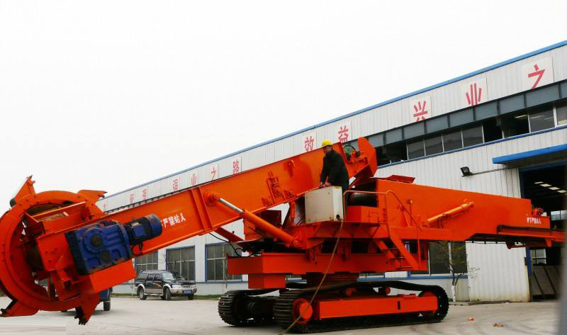 散料裝車機采用新技術,極大地提高工作效率,降低勞動強度,減少貨物損傷,縮短車船、碼頭的裝卸時間。是企業(yè)降低生產成本,提高效率和產品質量的有效設備。可以把港口,煤礦,砂石礦和物流中心,大型散貨存放地的散裝物料直接輸送到傳輸帶上并輸送到大型卡車上,裝車效率高,速度快,每小時可以裝料800噸以上。工作動力采用柴油機,行走為液壓馬達行走。履帶行走使用不同的復雜路況,移動快捷,方便,液壓先導操作簡單,靈活。